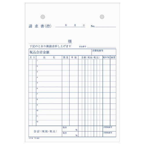 NC複写簿 請求書 B6縦 2穴80mmピッチ12行 50組 ウ-322