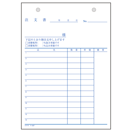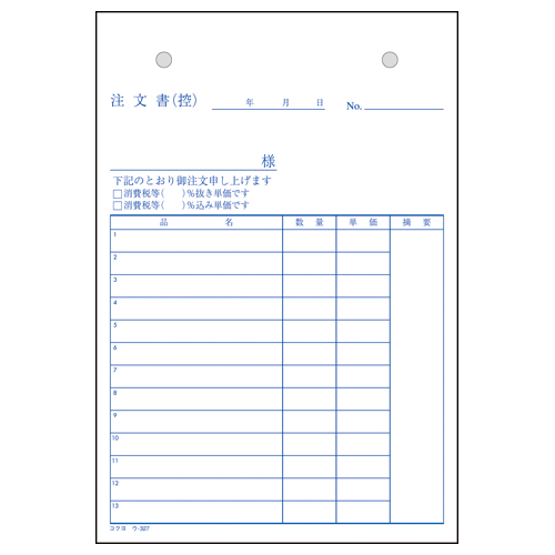 NC複写簿 注文書 B6縦 2穴80mmピッチ13行 50組 ウ-327