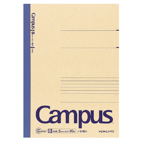 再生紙キャンパスノート B罫(中横罫) セミB5(6号) 罫幅6mm 40枚 ノ-E4BN