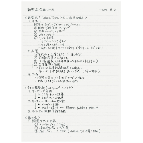 ●罫線上に等間隔に並んだドットを活用することで、ノートを美しく書くことができます