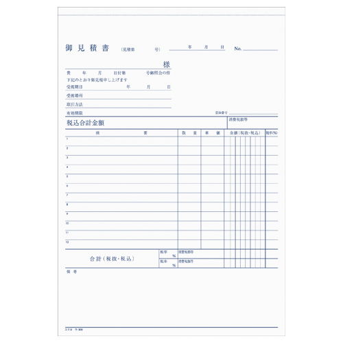 NC複写簿 見積書 明細記入欄付 2穴80mmピッチ 40組 ウ-308