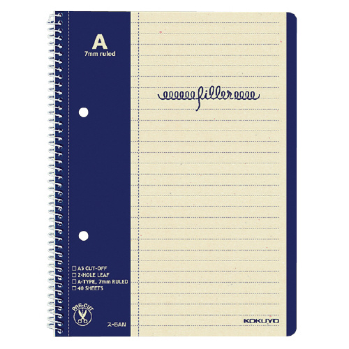 フィラーノート(スパイラルとじ) A5 2穴 罫幅7mmマージン罫入40枚 ス-5AN