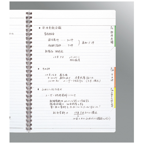 ●見開きページの両端に日付とタイトルが書き込めるエッジタイトル付き