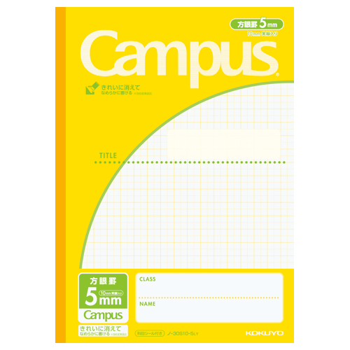 キャンパスノート(用途別) セミB5 5mm方眼10mm実線 ライトイエロー ノ-30S10-5LY