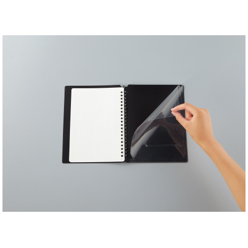●綴じ具が広く開き、ワンタッチで閉じることができるので中紙の差し替えもスムーズ。A5タテサイズ(20穴)のルーズリーフに対応。