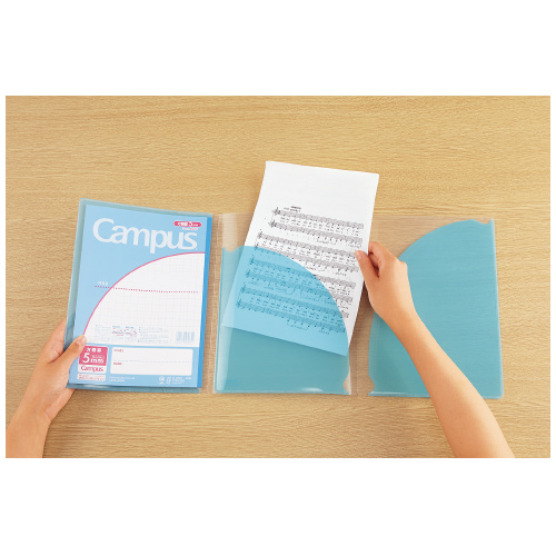 ●2つのポケットで配布プリントを教科別・目的別に分類することができ、プリントの端の折れや破れも防ぎます。