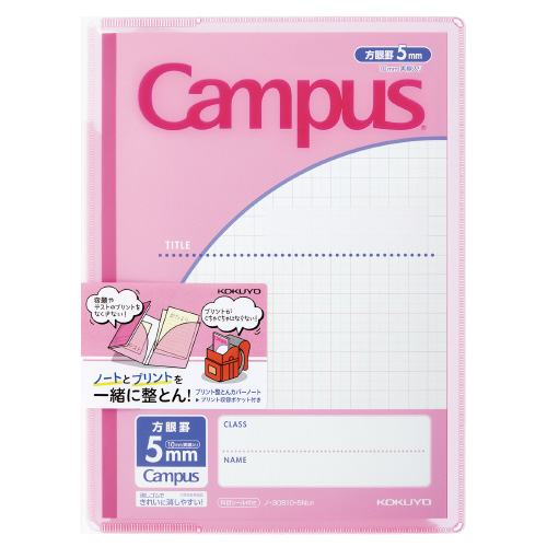 キャンパスプリント整とんカバーノート (用途別) ピンク ノ-623S10-5P
