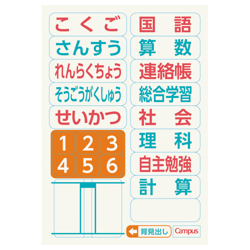 ●ひらがな・漢字の科目シール、背見出しシール付き
