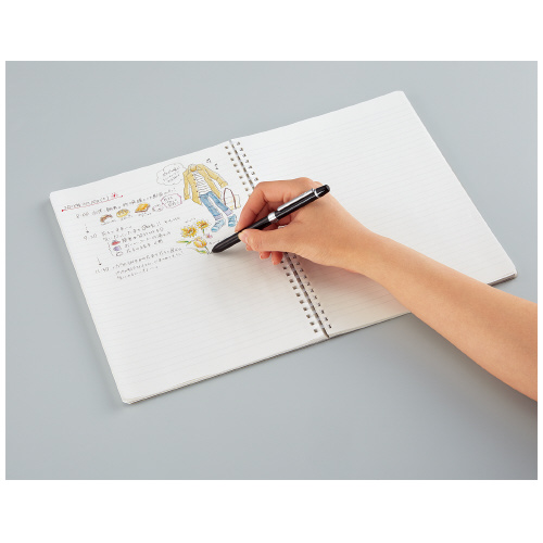 ●平らに開くので書き込みやすい、平らに折り返せるので狭い場所でも心地よく使える、といったリングノートのよさはそのままに、書くときリングに手が当たっても気にせず端まで美しく書ける、これからの新定番ノートです。
