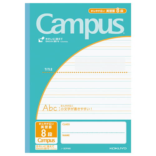 キャンパスノート(用途別) セミB5 英習罫8段 まん中が広い罫 30枚 青緑 ノ-30FW8