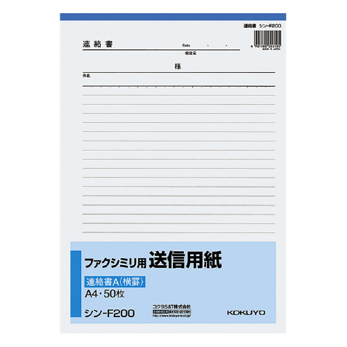 ファクシミリ用送信用紙 A4縦 50枚 シン-F200