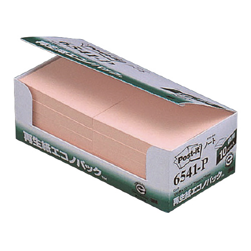 ポスト・イット再生紙ノート エコノP 75×75mm 100枚×10 ピンク 6541-P