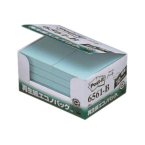 ポスト・イット再生紙ノート エコノP 75×50mm 100枚×10 ブルー 6561-B