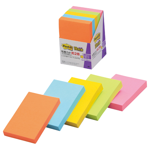 ポスト・イット強粘着 ノート 75×50mm 90枚×5 蛍光5色 656-5SSAN