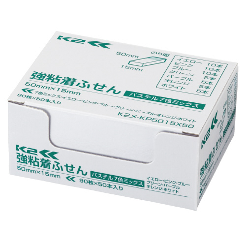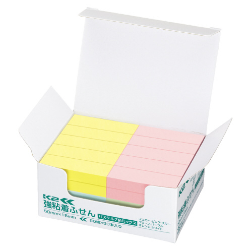 強粘着ふせんK2 50×15 50本 ミニサイズ(パステル7色ミックス) K2メ-KP5015X50