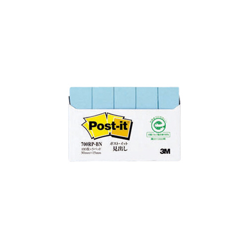 ポスト・イット再生紙見出し 50×15mm 100枚×5 ブルー 700RP-BN