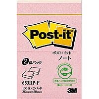 ポスト・イット再生紙ノート 38×50mm 100枚×2 ピンク 653RP-P