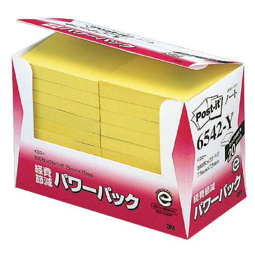 ポスト・イット再生紙ノートパワーパック 75×75mm 100枚×20 イエロー 6542-Y