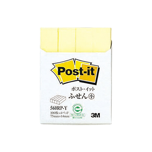 ポスト・イット再生紙ふせん(小) 75×14mm 100枚×4 イエロー 560RP-Y