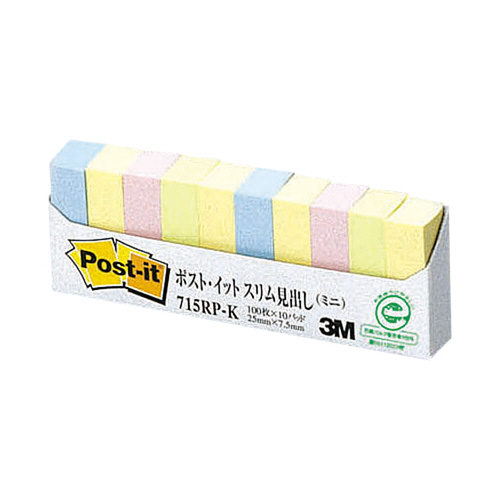 ポスト・イット再生紙スリム見出し ミニ 25×7.5mm100枚×10 4色混色 715RP-K