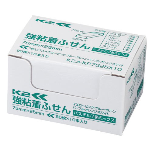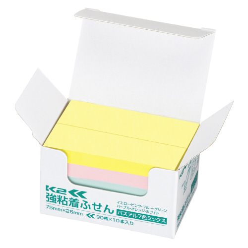 強粘着ふせんK2 75×25 10本 レギュラーサイズ(パステル7色ミックス) K2メ-KP7525X10