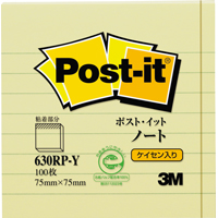 ポスト・イット 再生紙ノート 罫線入り 75x75mm 100枚 イエロー 630RP-Y