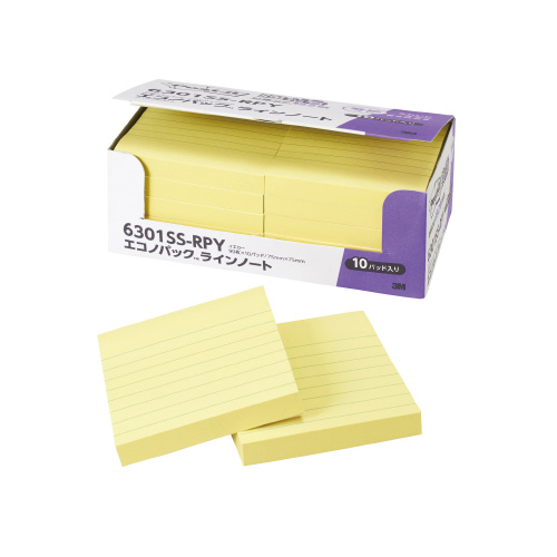 ポスト・イット 強粘着ノート 罫線入 パステルイエロー 10冊入 6301SS-RPY
