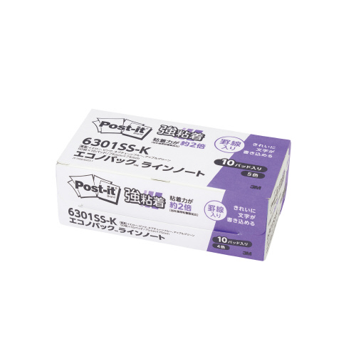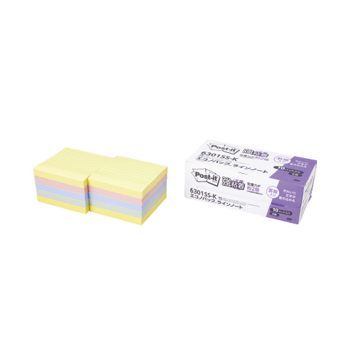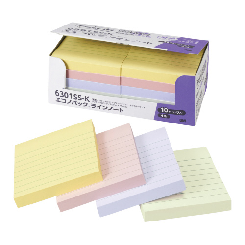 ポスト・イット 強粘着ノート 罫線入 パステルカラー混色 10冊入 6301SS-K