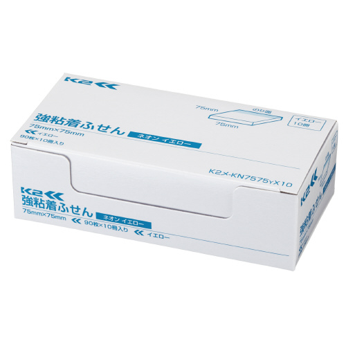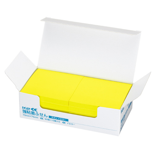 強粘着ふせんK2 75×75 10冊 正方形タイプ(ネオン・イエロー) K2メ-KN7575YX10