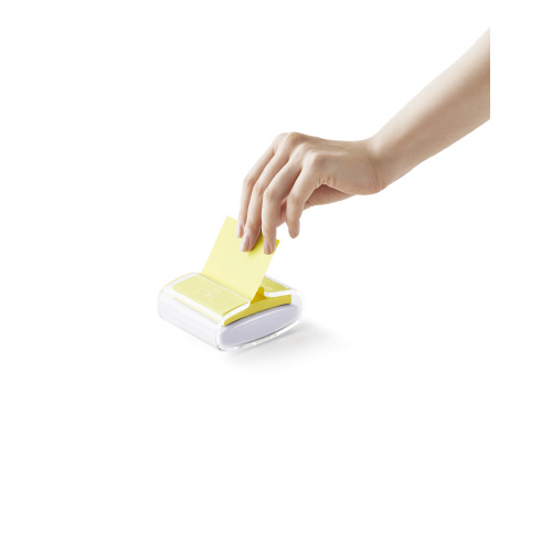 ●片手でサッと1枚ずつ取り出せる、ポップアップタイプの専用リフィル。粘着力約2倍(メーカー通常粘着製品比)の強粘着タイプで、樹脂面や垂直面にもしっかり貼れてきれいにはがせます。