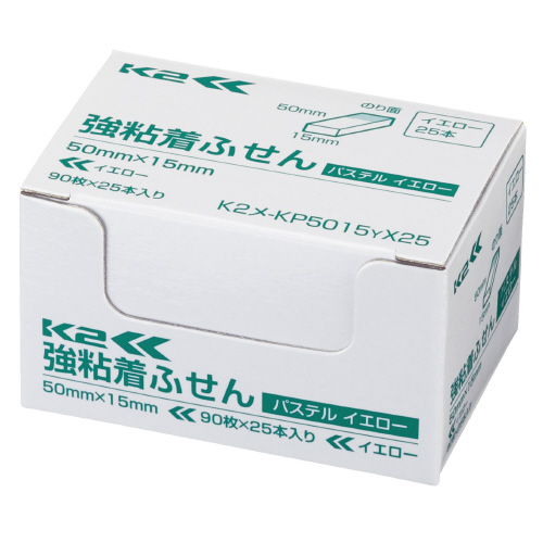 強粘着ふせんK2 50×15 25本 ミニサイズ(パステル・イエロー) K2メ-KP5015YX25