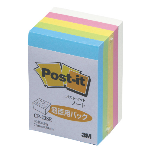 ポスト・イットカラーキューブ超徳用 75×50mm 450枚 パステル5色 CP-23SE