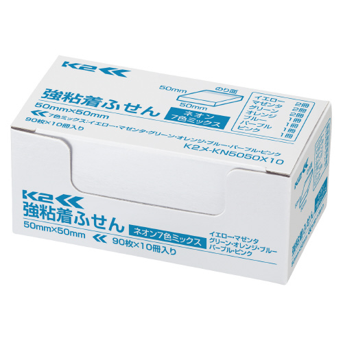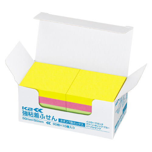 強粘着ふせんK2 50×50 10冊 ミニ正方形サイズ(ネオン7色ミックス) K2メ-KN5050X10