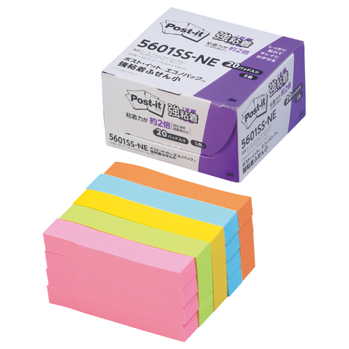 ポスト・イット強粘着ふせん小エコノP 75×14mm 90枚×20 蛍光5色 5601SS-NE