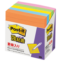 ポスト・イット強粘着ノート罫線入り 75mm×75mm 90枚×5 蛍光5色 630-5SSAN