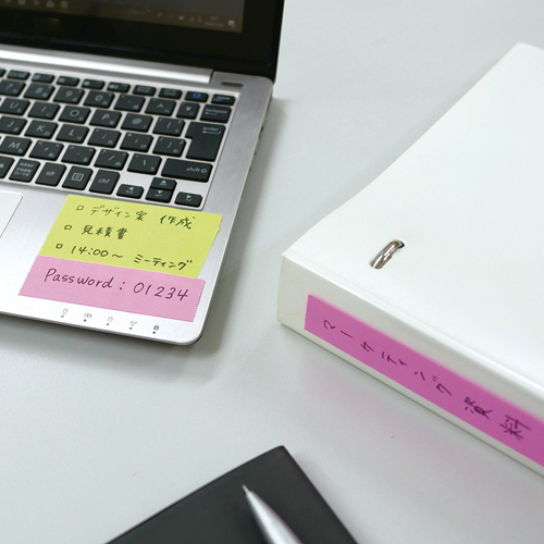 ●強粘着タイプなので、パソコンやホワイトボード、キャビネットなどの樹脂面、垂直面にもピタッ!とつきます!