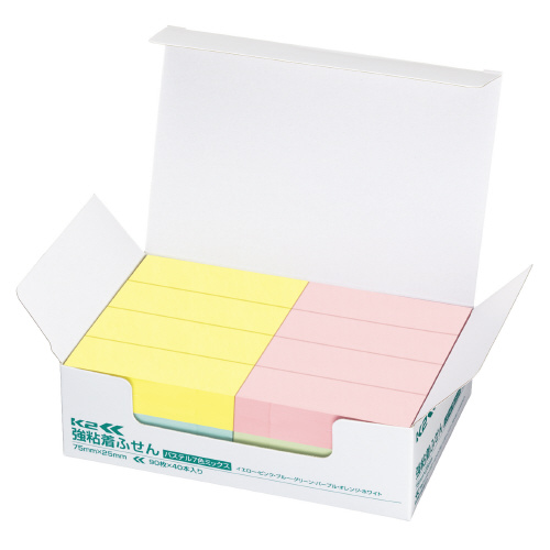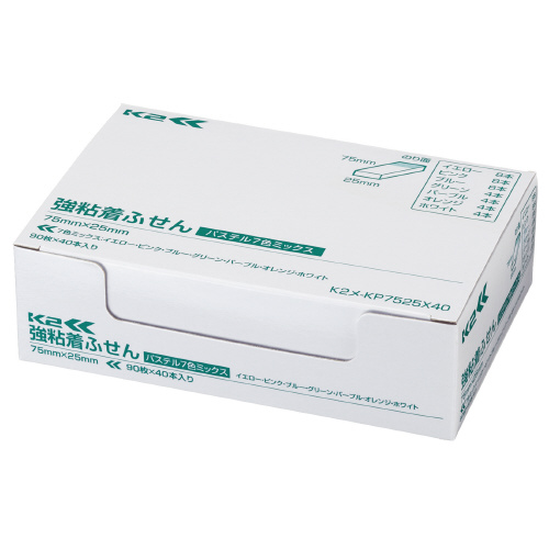 強粘着ふせんK2 75×25 40本 レギュラーサイズ(パステル7色ミックス) K2メ-KP7525X40