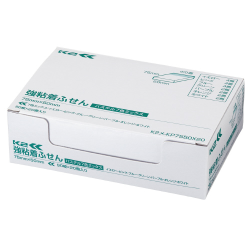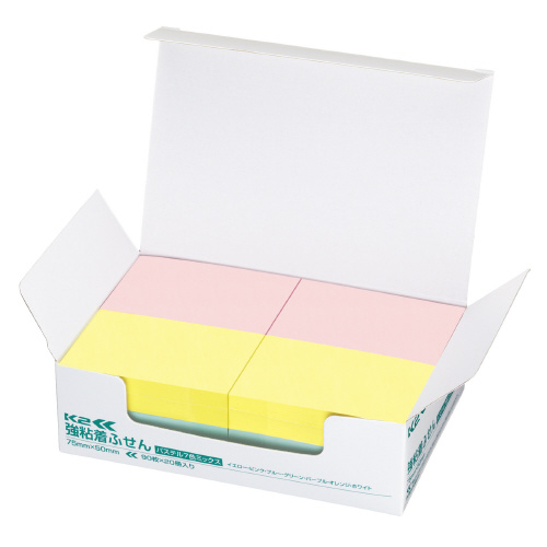 強粘着ふせんK2 75×50 20冊 ノートタイプタテ(パステル7色ミックス) K2メ-KP7550X20