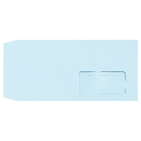 ●透明度の高いフィルム窓の窓付封筒●サイズ/長形3号/120×235mm●紙厚/80g/平方メートル●色/ブルー●センター貼り●100枚入り●マド寸法/45×90mm●古紙配合●再生OPSフィルム使用※窓付き封筒をプリンタに通すと、窓部分が熱で溶けてしまうことがあるので、プリンタには通さないでください。