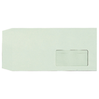 ●透明度の高いフィルム窓の窓付封筒●サイズ/長形3号/120×235mm●紙厚/80g/平方メートル●色/グレー●センター貼り●100枚入り●マド寸法/45×90mm●古紙配合●再生OPSフィルム使用※窓付き封筒をプリンタに通すと、窓部分が熱で溶けてしまうことがあるので、プリンタには通さないでください。