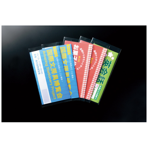 ●フタがないので、封入物の出し入れがしやすい ●イベントなどでのリーフレット配布に ●長形3号 ●サイズ/120×235mm ●フィルム厚40μm ●100枚入り ●〒枠無 ●材質/CPPフィルム