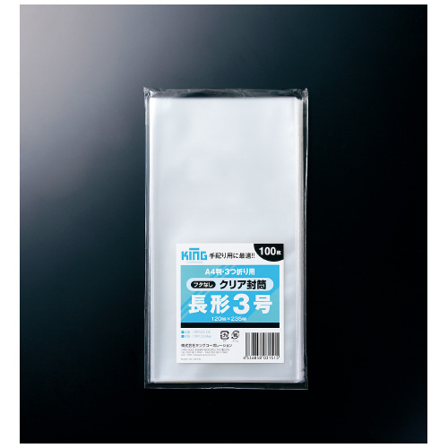 クリア封筒 フタなし 長3 100枚入 CRFN3100