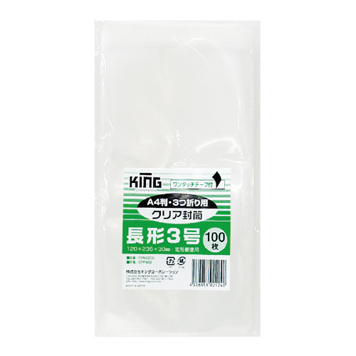 クリア封筒 テープ付き 長3 100枚入 CFN3Q100