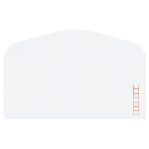 ●洋形4号 ●サイズ/235×105mm ●紙厚100g/平方メートル ●100枚入り ●〒枠付 ●ダイヤ貼り ●アラビアのり付 ●紙質/白封筒用紙(ケント)