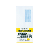 ●中身が透けない裏地紋入り窓付き封筒 ●窓部は分別せずに処分できる環境対応のグラシン紙を使用 ●長形3号 ●サイズ/120×235mm ●ホワイト ●紙厚100g/平方メートル ●100枚入り ●テープ付 ●マド寸法/45×90mm ●センター貼り ●窓/グラシン紙
