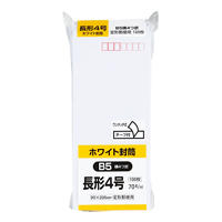 ●長形4号 ●サイズ/90×205mm ●紙厚70g/平方メートル ●100枚入り ●テープ付 ●〒枠付 ●センター貼り ●紙質/白封筒用紙(ケント)