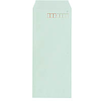 ●長形4号 ●サイズ/90×205mm ●グリーン ●紙厚80g/平方メートル ●100枚入り ●〒枠付 ●サイド貼り ●古紙配合紙