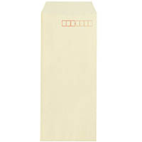 ●長形4号 ●サイズ/90×205mm ●クリーム ●紙厚80g/平方メートル ●100枚入り ●〒枠付 ●サイド貼り ●古紙配合紙