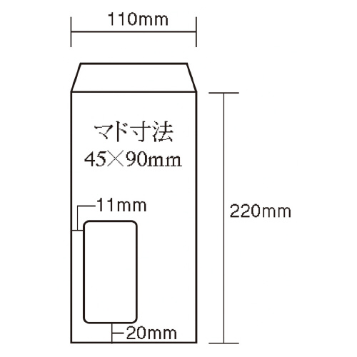 ●取り出しやすいケース入り ●A4三つ折りぴったりサイズ ●長形6号 ●サイズ/110×220mm ●ホワイト ●紙厚80g/平方メートル ●100枚入り ●ワンタッチのり付き ●マド寸法/45×90mm ●サイド貼り ●窓/グラシン紙
