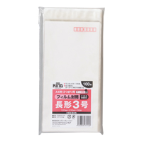 ●表面が白、裏面が透明のテープ付きフィルム封筒 ●白地にボールペン等で書けます ●長形3号 ●サイズ/120×235mm ●色/表:白、裏:透明 ●フィルム厚/50μm ●100枚入 ●ワンタッチテープ付き ●〒枠付き ●材質/CPPフィルム